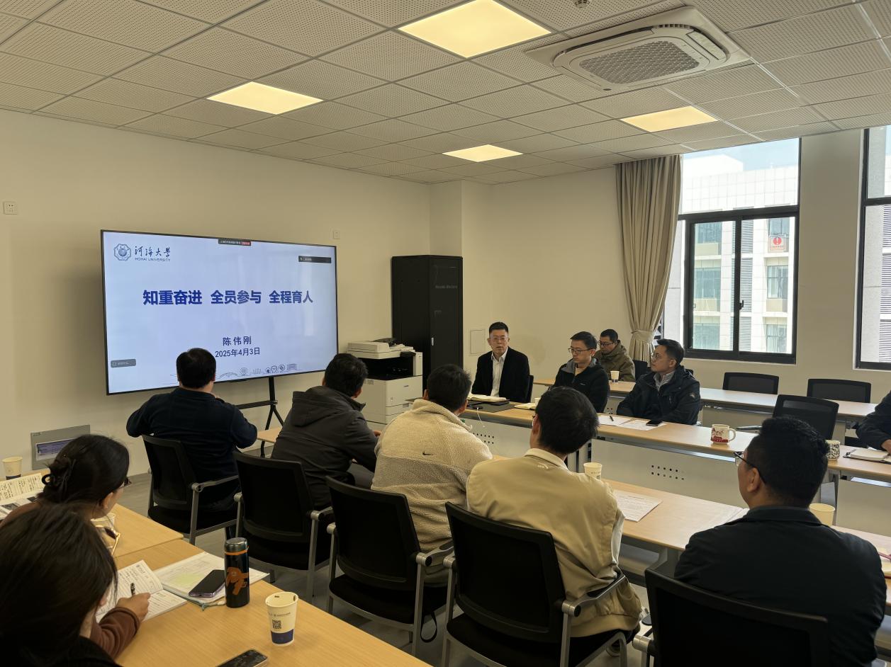 为落实立德树人根本任务,全面推进学院“大学工”工作体系建设,凝聚“三全育人”合力,持续提升学院人才培养质量,近日,High漫画 召开“大学工”工作体系推进会。学院院长赵永好会前听取了工作汇报,并就教育教学联动、构建学院“大学工”工作体系提出了明确要求。学院党委书记陈伟刚,副院长宋丹,党委副书记、副院长辛绍权,系正副主任、教学秘书、辅导员、全体班导师、新进青年教师参会。