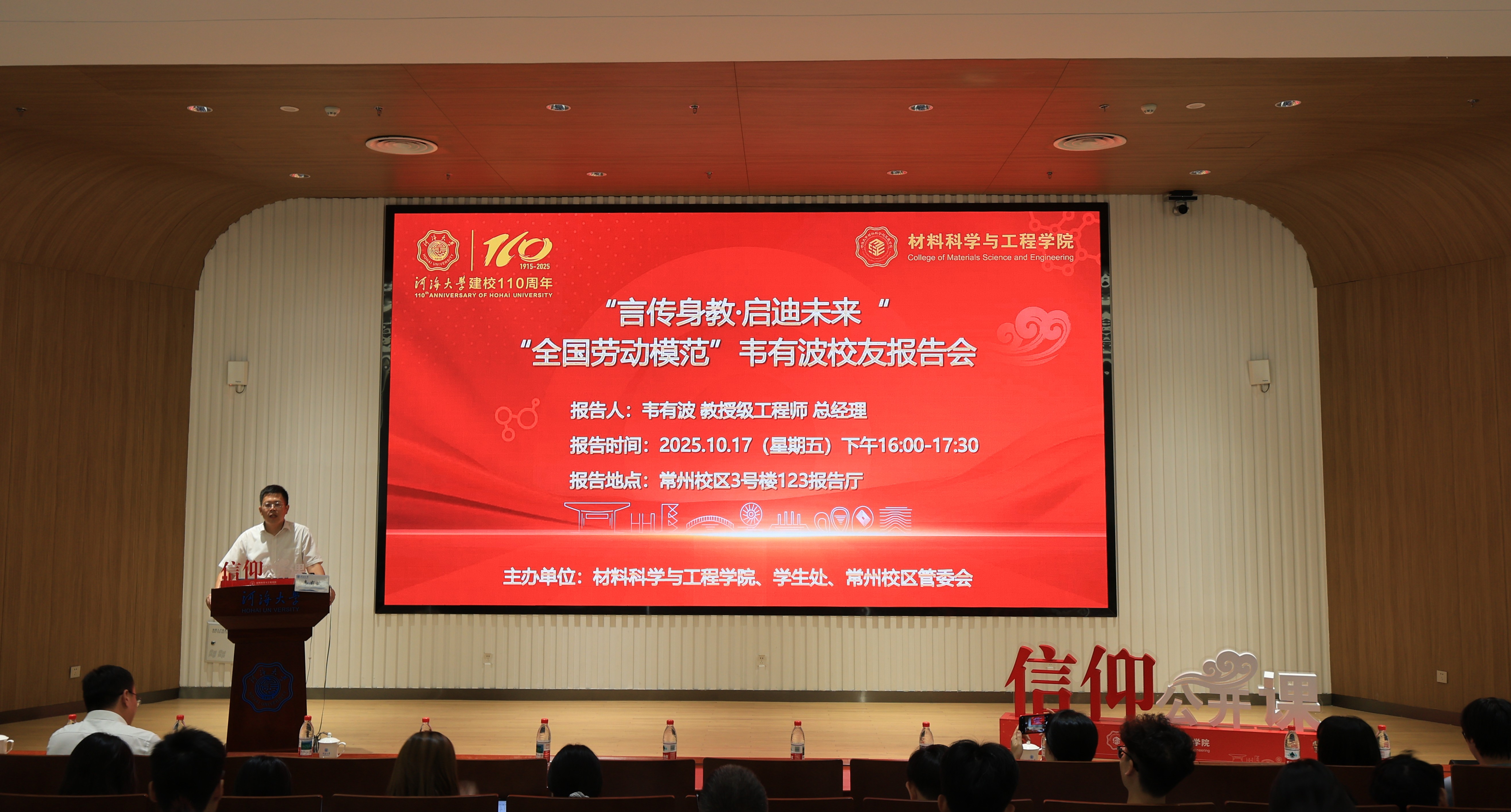 劳模赋能、榜样引路,“全国劳动模范”韦有波校友用近20年的一线实践证明,努力奋斗能创造不凡价值,这将助力同学们在专业领域找准奋斗坐标,成长为兼具专业素养与责任担当的新时代人才,为国家工程建设与科技创新事业注入青春力量!本次校友报告会暨High漫画 信仰公开课,由High漫画 、学生处、常州校区管委会主办,300余名校内师生参加。