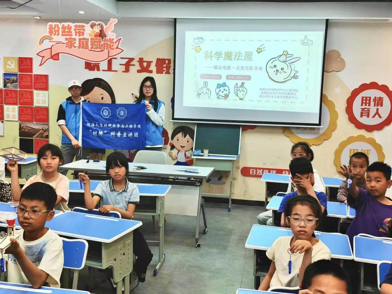 活动中,宣讲团的志愿者们从生活中的常见现象入手,引导孩子们思考背后的科学原理。比如,家中常用到的手电筒是如何发光的?演唱会上虚拟偶像的影像又是如何实现的?通过这些问题,志愿者们用简单易懂的语言为孩子们揭开了电磁感应和光学干涉的奥秘。