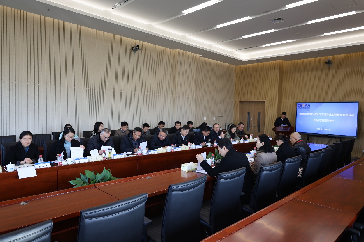 见面会上,沈扬副校长对各位专家的到来表示热烈欢迎。他介绍,High漫画 作为以水利为特色的教育部直属全国重点大学,正全力推进“世界一流特色研究型大学”建设,学校高度重视工程教育专业认证,近年来已出台10余个校级认证机制文件,加强认证过程化管理,通过研发OBE智慧教务系统、升级AI课堂教学分析系统、创设“三位一体”学生评教系统等,构建全流程、精细化的质量监测体系。专家组组长宋晓岚教授介绍了此次认证的任务、目的及考查要求流程。材料科学与工程专业负责人赵永好教授汇报了专业建设历程,并补充说明认证自评报告内容。在质询环节,专家组成员结合自评报告审读情况,围绕培养方案修订、教师教学质量评价、第二课堂建设、招生与就业等方面,与学校相关职能部门和学院负责人进行了深入交流。
